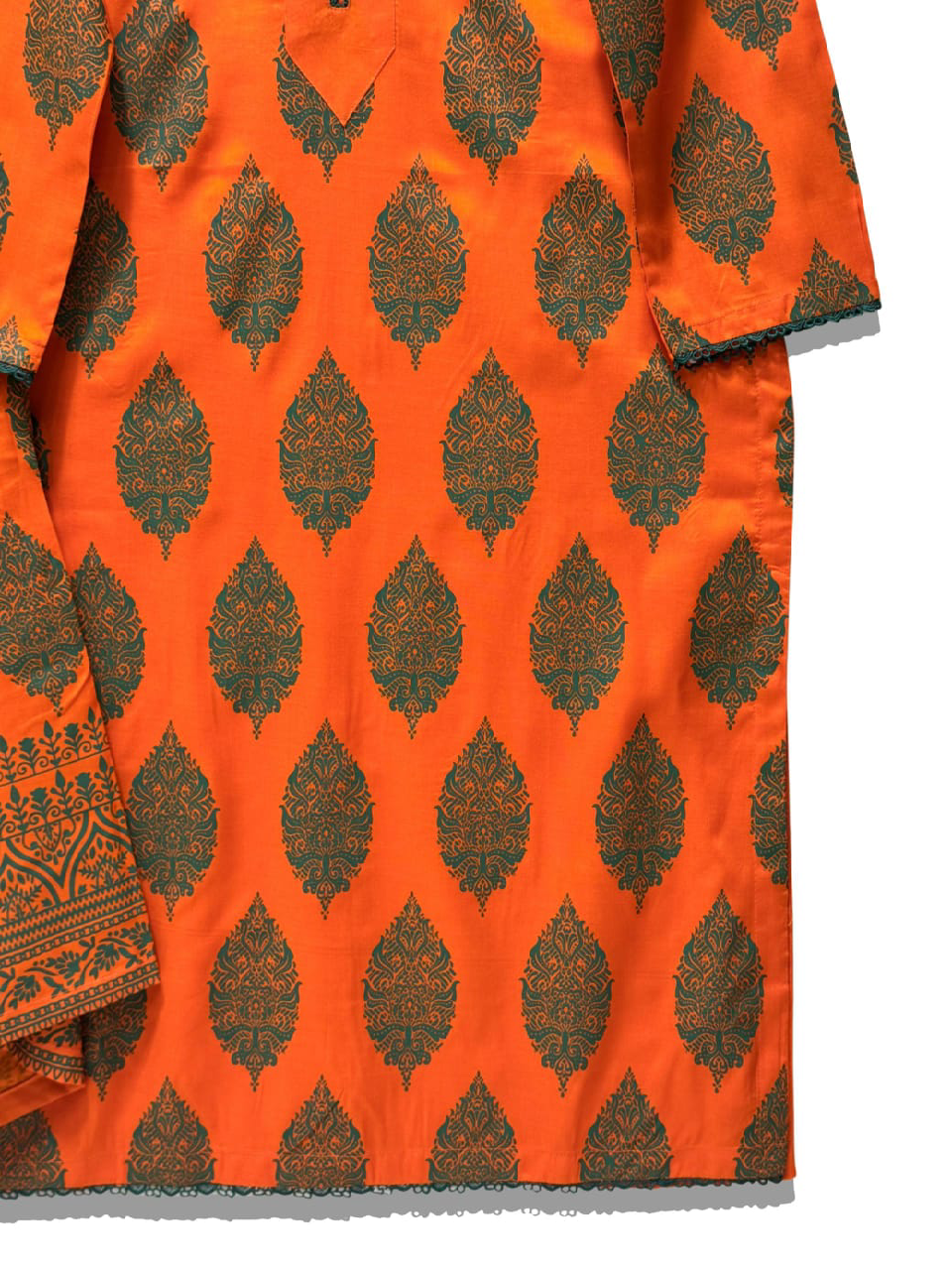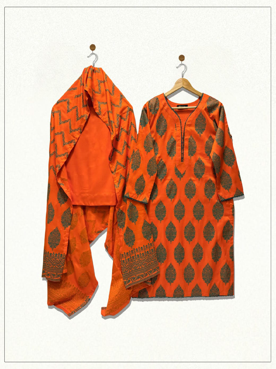 A chic 3-piece linen suit featuring a beautifully screen-printed shirt, a matching screen-printed dupatta, and a plain plazo for a clean, graceful finish.